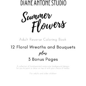 Our Summer Flowers Reverse Coloring Book includes 12 soft and summery floral bouquets, sprigs, vases and wreaths – plus three bonus mystery pages.