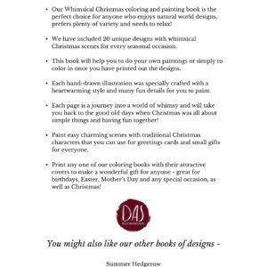 - Our Whimsical Christmas coloring and painting book is the perfect choice for anyone who enjoys natural world designs, prefers plenty of variety and needs to relax!