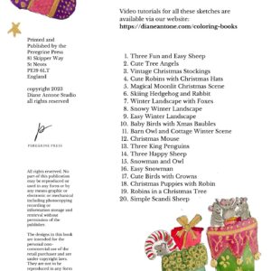Enjoy a variety of charming designs with this Christmas coloring book from art brand, Diane Antone Studio.